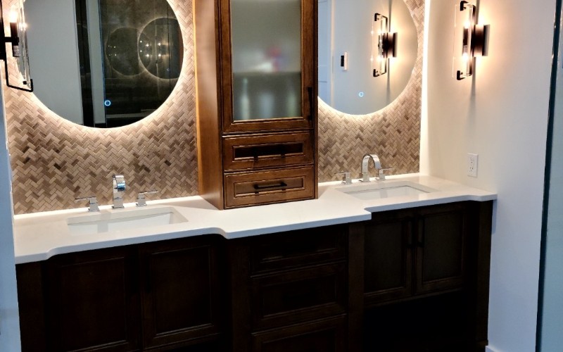 This would include a new bathroom layout and design, luxury materials including heated tile flooring, new vanity with dual sinks, better lighting, new shower or tile tub surround, and more.